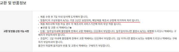 그 외 한 곳은 '단품'에 대해 불량시 A/S를 대행한다고 명시하였지만 얼마동안 대행하는지는 알 수 없는데다 1주일 이후에는 택배비를 구매자가 부담한다. 공인 대리점에서 왕복 택배비를 부담하는 정품 CPU와의 또 다른 차이점이다. 다른 곳은 '단품'에 대한 A/S 내용을 알 수 없어 직접 확인해야 한다.