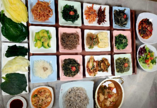 ▶ 반찬 퀄리티수제 나물, 잡채, 샐러드까지 하나하나 손이 가는 맛이라 밥 두 공기는 기본입니다.