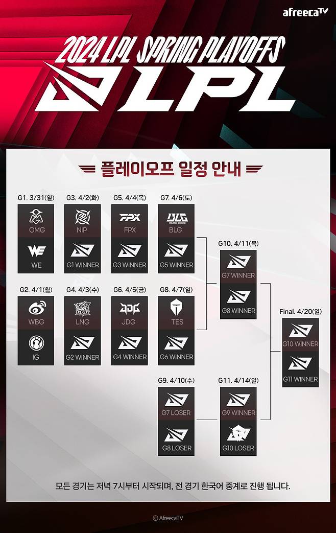 28일 아프리카TV는 오는 31일 시작하는 2024 LPL 스프링 플레이오프 전 경기를 한국어로 생중계한다고 밝혔다.