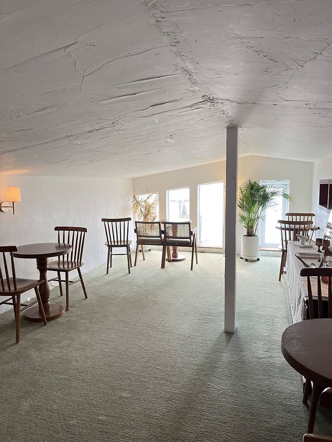 실내 공간에서도 바다 경치를 놓치지 않도록 통유리창이 크게 설계되어 있어요. 날씨가 안 좋을 때나, 혹은 무더운 한낮에 실내에서 머물러도 탁 트인 바다 풍경을 한눈에 담아낼 수 있답니다. 테이블도 여유롭게 배치돼 있어, 한가롭게 앉아서 대화 나누거나 노트북 작업을 해도 좋을 만큼 쾌적해요.