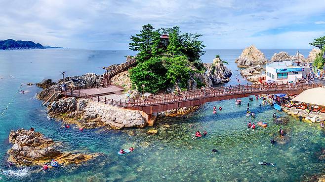 해양 체험을 즐긴 후 구름다리 위를 걸으며 항구를 한눈에 내려다보는 것도 장호항에서만 할 수 있는 또 다른 즐거움이죠.