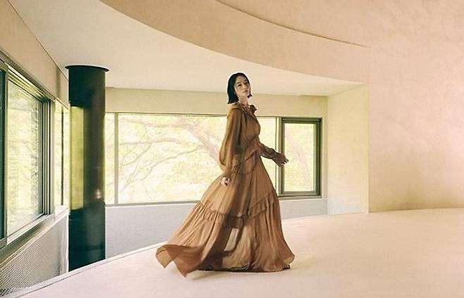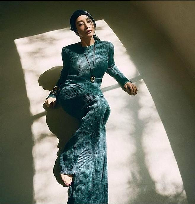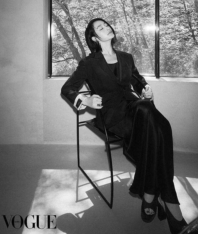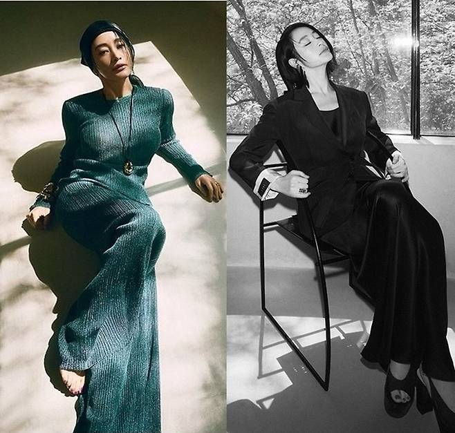 김혜수는 21일 자신의 인스타그램에 보그코리아와 함께 한 하이엔드 여성복 브랜드 '존스(JONS) 화보를 여러장 게재했다.