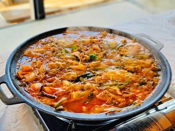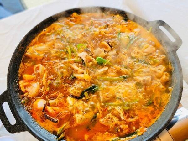묵은지와 삼겹살을 함께 끓여낸 찜요리는 감칠맛 덕분에 많은 사람들이 즐기는 메뉴입니다.