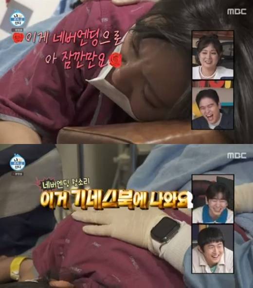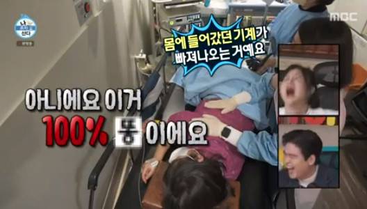 뿐만 아니라 그는 "선생님 지금 똥이 나와요"라고 다급하게 말해 폭소를 더했다. "기계가 빠져나오는 거다"라는 의사의 말에도 "아니에요. 이거 100% 똥이다. 기네스북에 나온다"라고 반응했다.