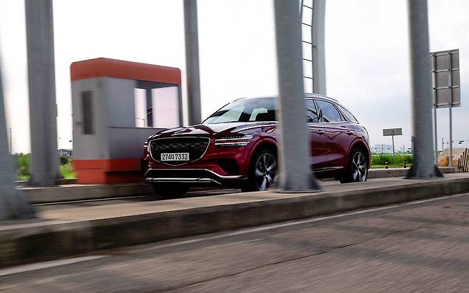 GV70의 전륜 서스펜션은 적당하고 편안한 수준의 단단함을 갖췄다. 하지만 후륜 서스펜션은 전륜 대비 과도하게 무른 성향으로 특히 방지턱을 넘을 때 아쉬움이 커진다. 앞좌석에서 운전을 하고 있음에도 뒷좌석에서나 느낄법한 극심한 상하 움직임을 체감한다는 얘기다. 이것이 이질감 큰 주행 경험을 만들게 된다.