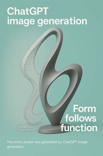 [솔리드 화이트 산 세리프 텍스트로, 오른쪽 하단 지점에 “형태는 기능을 따른다”고 영어로 써줘. 배경에 현대적인 조각품 사진 넣어줘. 왼쪽의 와이어프레임 스케치에서 오른쪽의 완전히 사실적인 버전으로 점차 전환해줘]