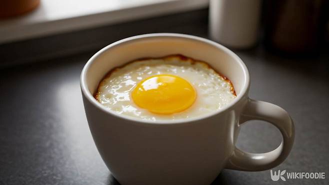 먼저 머그컵을 준비해 전자레인지용인지 확인한 뒤 계란 한 개를 넣는다. 컵의 크기에 따라 완성된 계란프라이의 형태가 달라질 수 있으므로 취향에 맞게 선택하는 것이 좋다.