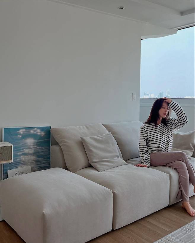 특히 소파에 기대거나 쿠션을 껴안는 포즈들은 무심한 듯 자연스럽고, 내추럴한 메이크업과 포근한 웨이브 헤어가 조화를 이루며, 일상 속 여유로움을 세련되게 담아냈어요.