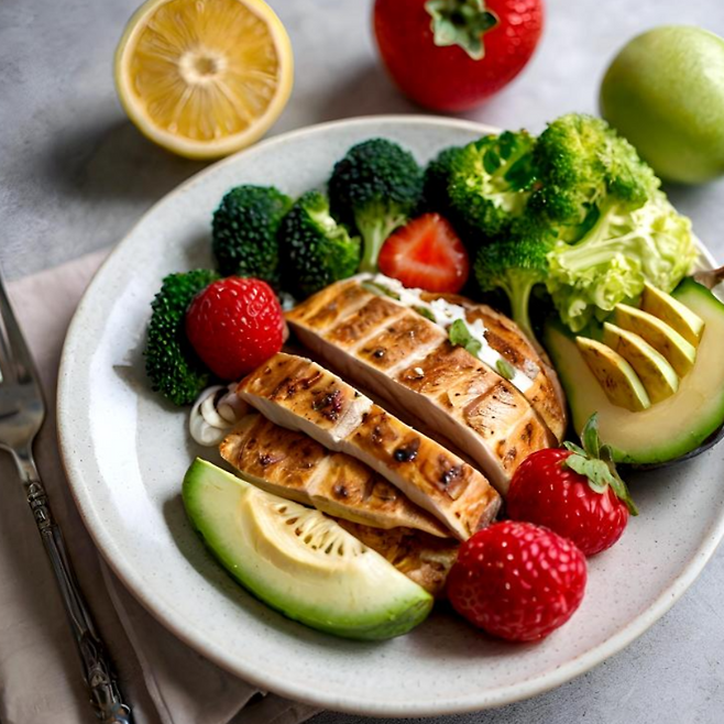 – 닭가슴살 + 찐 브로콜리 + 반 개 아보카도