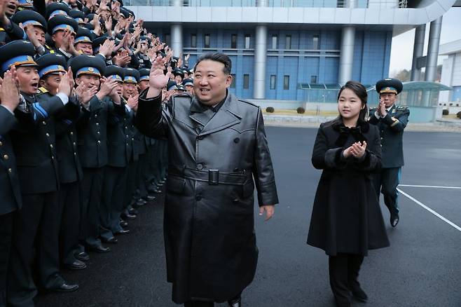 특히 김정은의 상징으로 여겨지던 검정 롱가죽 코트를 동일하게 착용했다는 점도 상징적 장면으로 해석되고 있다. 김주애의 등장은 지난 9월 중국 전승절 행사 이후 처음이며, 이전 공개들과 비교해 연출의 무게감이 한층 더 커졌다는 평가가 나온다.