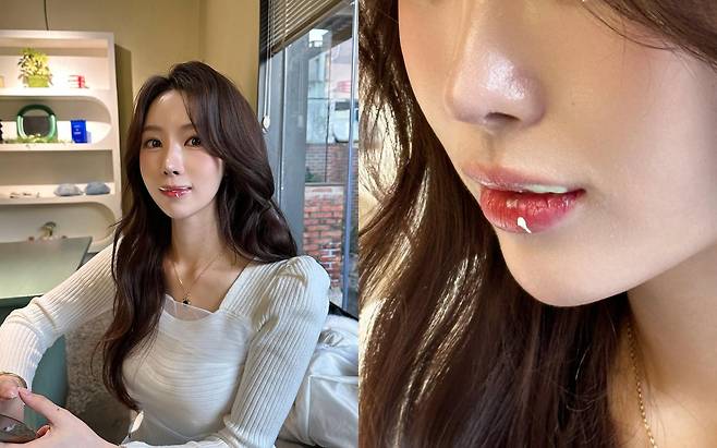 입술에 살짝 묻은 거품과 촉촉한 립 컬러가 어우러져 마치 ‘키스를 부르는 입술’이라는 표현이 딱 어울리는 장면이다. 자연스러운 플러핑 효과가 강조된 립 메이크업과 매끈한 피부 표현은 이리안의 미모를 한층 더 돋보이게 한다. 그녀의 입술은 트렌디한 MLBB 컬러와 은은한 광택이 감도는 텍스처로 더욱 매력적으로 보인다.