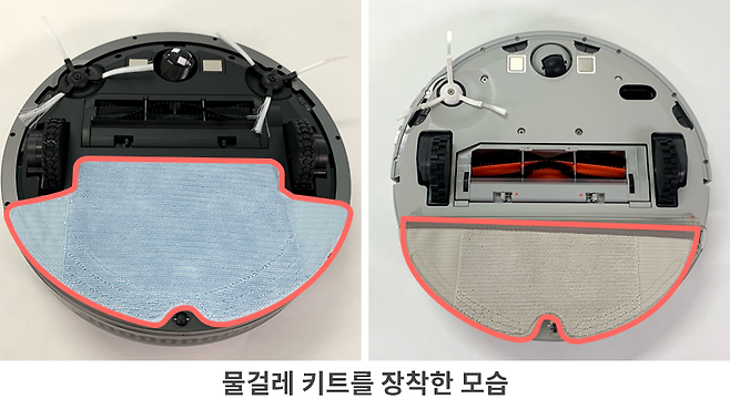 사람의 힘이 들어가는 일반 청소기와 달리 로봇청소기는 청소할 때 가해지는 힘이 없어 바닥에 잘 밀착하지 않습니다. 때문에, 로봇청소기가 물걸레 키트를 장착한다고 하여도, 실제 물걸레 세척력은 매우 낮다고 할 수 있습니다.