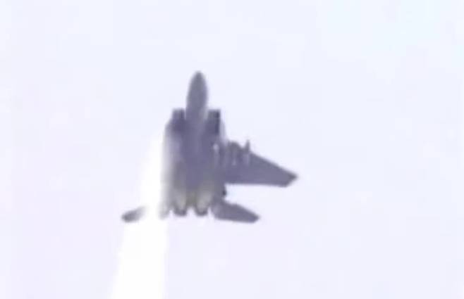 공군 훈련 중이던 한 대의 F-15D 전투기가 A-4N 스카이호크 훈련기와 공중 충돌하면서 오른쪽 날개가 통째로 사라진 것입니다.