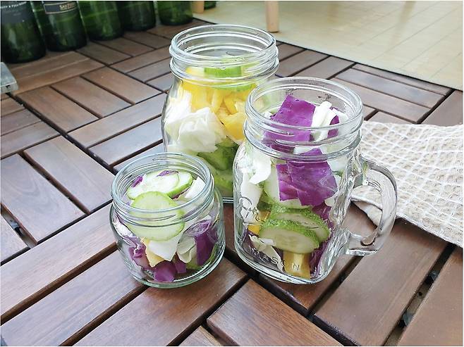 ✅ 유리병은 열탕소독해 주시고 썰어둔 채소를 넣어주세요