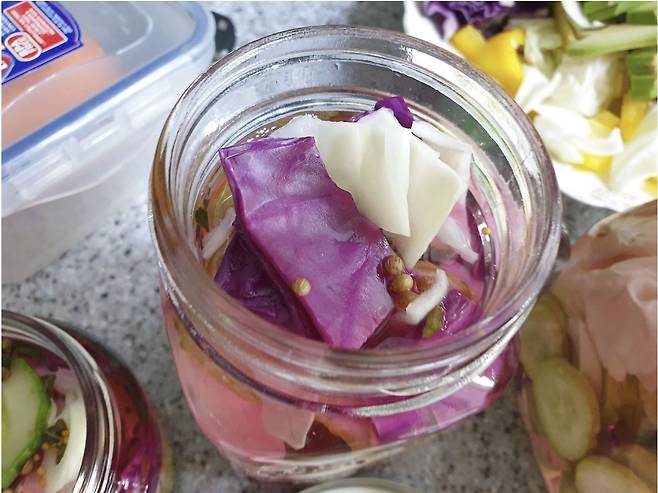 ✅ 적양배추를 넣으면 보랏빛 피클을 만들 수 있어요