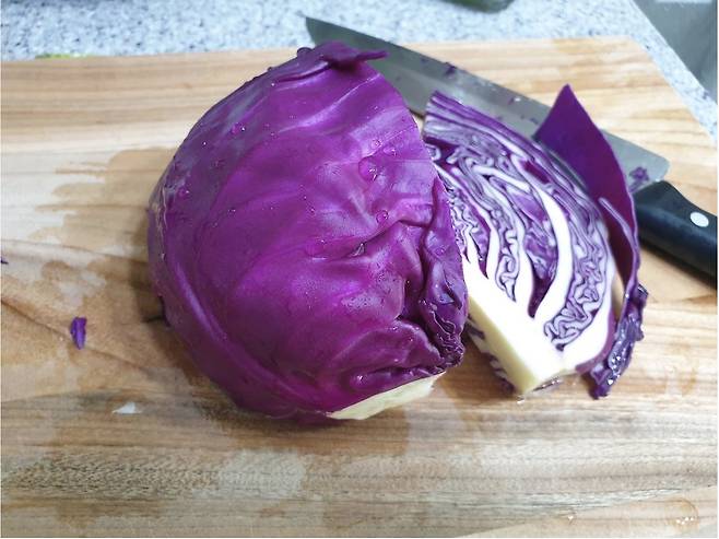✅ 양배추, 적양배추도 먹기 좋은 크기로 썰어주세요