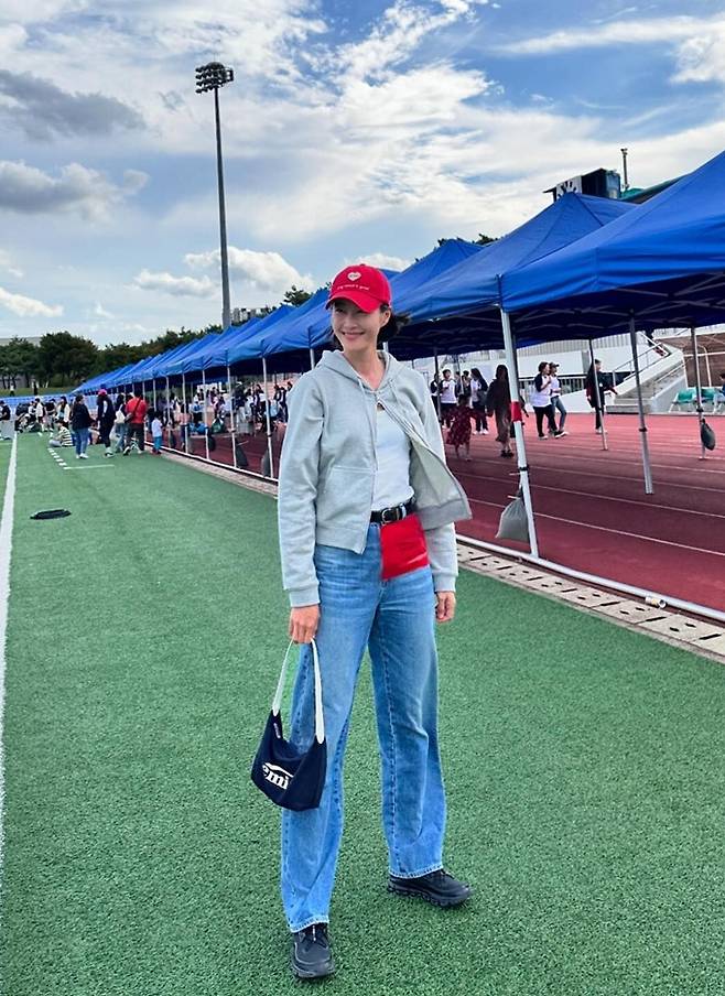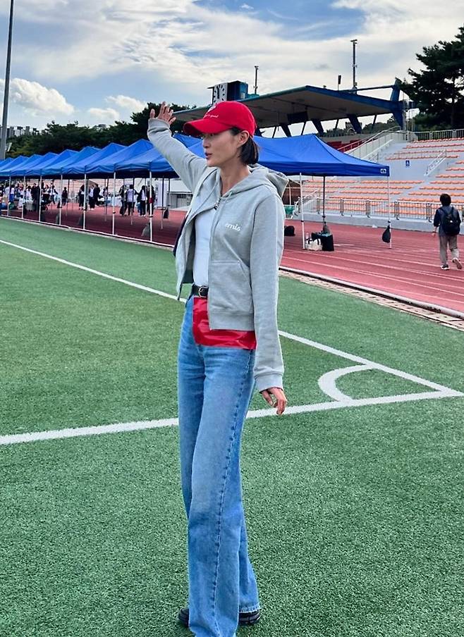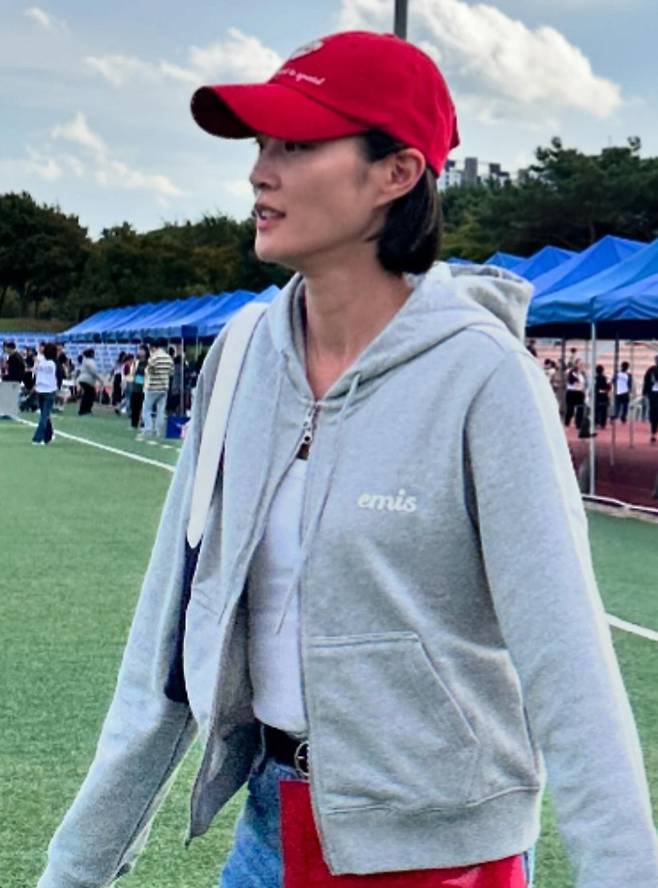 모델 겸 방송인 이현이가 후드 스웻셔츠 나들이룩으로 운동회에서도 모델 핏을 자랑했다.