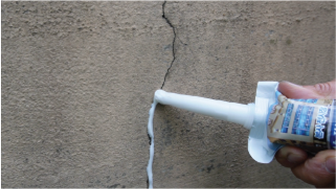 사진에서 보듯이 벽면에 발생한 균열은 크림제형의 점도가 높고 건조 후 투명하게 되는 제품으로 균열 속으로 깊이 주입되도록 비닐 튜브에 실리콘 노즐이 부착된 특허받은 제품으로 누구나 쉽게 시공할 수 있는 장점이 있다.