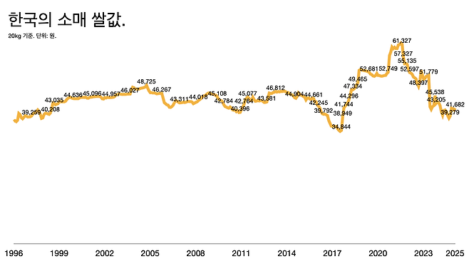 - 일본은 지난해 쌀값이 평년 대비 63%나 급등했다. 생산량이 줄어 수요 대비 40만 톤 정도가 부족했다. 일본은 1970년대부터 쌀 생산을 줄이고 콩이나 밀 등의 전작을 지원했다. 생산이 줄어든 반면 관광 수요가 늘면서 쌀 소비도 늘었다.