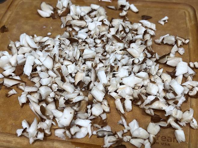 두부조림의 비법 재료, 바로 표고버섯입니다. 표고버섯은 은근한 감칠맛과 깊은 향을 더해주어, 두부의 담백한 맛을 한층 풍부하게 만들어줍니다. 표고버섯은 잘게 잘라서 준비해 주세요.