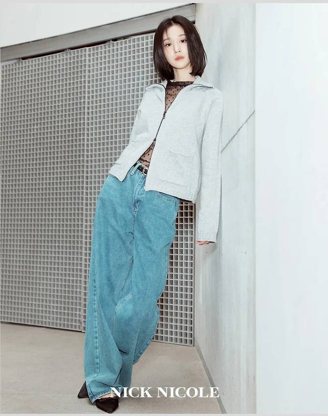 또 서예지는 망사 시스루 상의와 연청 와이드 데님 위에 심플한 그레이 후디를 걸쳐 도시적이면서도 쿨한 무드를 연출했습니다.