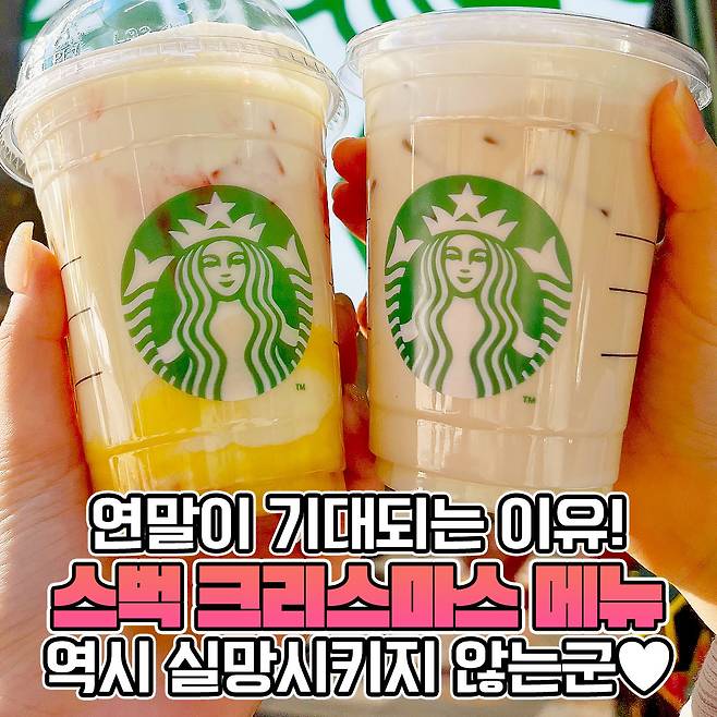 안녕하세요! 밥심이 왔어요~ 연말이 다가오면 식품 업계에서는 발빠르게 겨울 시즌 음료를 내곤 하죠? 겨울에는 그 시즌 음료 찾아먹는 쏠쏠한 재미가 있는 것 같아요. 물론 계절마다 시즌 음료가 나오긴 하지만 연말&크리스마스가 껴있으면 말이 다르죠.
