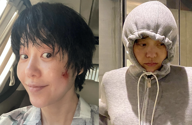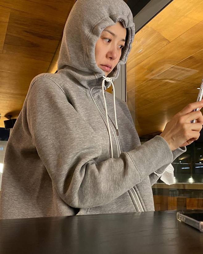 사진 속 고현정은 숏컷에 후드를 뒤집어 쓴 모습입니다.