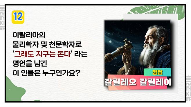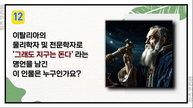 이탈리아의 물리학자 및 천문학자. '그래도 지구는 돈다' 라는 명언을 남긴 이 인물은 누구인가요?