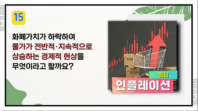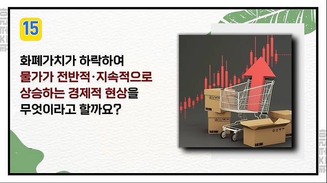 화폐가치가 하락하여 물가가 전반적·지속적으로 상승하는 경제적 현상을 무엇이라고 할까요?