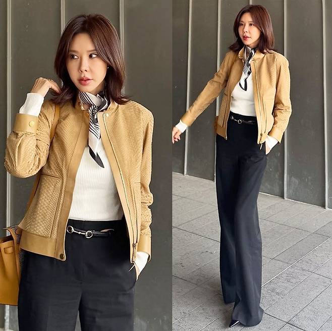 공개한 사진에서 김준희는 블랙 팬츠와 니트 톱에 블루종 스웨이드 집업 재킷을 걸친 댄디한 스타일로 패션 CEO다운 파워풀한 모습을 노출했다.
