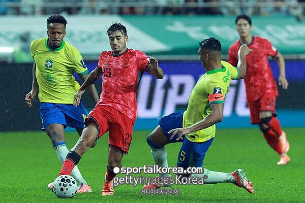 홍명보 감독이 이끄는 대한민국은 10일(한국시간) 서울월드컵경기장에서 열린 브라질과의 친선경기에서 0-5로 완패했다. 에스테반 윌리앙(첼시 FC)과 호드리구(레알 마드리드 CF)가 나란히 멀티골을 기록했고, 비니시우스 주니오르(레알)도 1골 1도움으로 공격을 이끌었다.