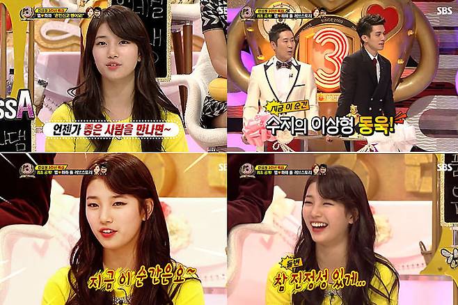 당시 수지는 이전 이상형은 강동원과 이민기, 양요섭, 김수현, 이안 소머헐더 등이라고 전했는데 현재 이상형은 이동욱이라고 밝혔습니다.
