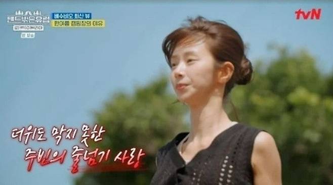 캠핑장에 도착하자마자 텐트를 설치한 그는 잠시도 쉬지 않고 줄넘기를 꺼내 들었다. 뙤약볕 아래, 체감온도 37도에 가까운 날씨에 땀을 쏟으며 운동을 이어가는 모습은 동행한 멤버들까지 감탄하게 만들었다.