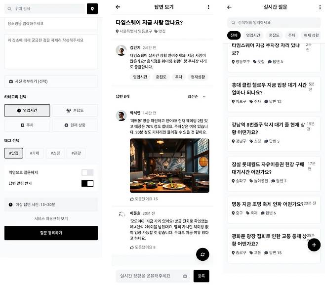 - ์ด์ฉ ๋ชฉ์ : ํน์ ์ฅ์ ๊ธฐ์ค, ์ํ๋ ๋ฐฉ๋ฌธ ๋ชฉ์ ์ ๋ง๋ ์ ๋ณด๋ฅผ ์ค์๊ฐ์ผ๋ก ์ป๊ณ ์ถ์ ๋ ์ฌ์ฉ