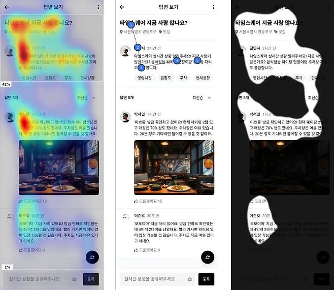 (1) ์ฌ์ฉ์ ์์ ํ๋ฆ ๋ถ์: ์์ ์ง์ค ๊ตฌ์ญ๊ณผ ์ฌ์ฉ์๊ฐ ๋์น๋ ์์ญ์ ์๋ณ