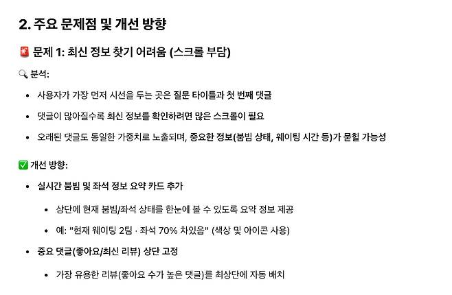 (2) UI/UX ๋ฌธ์ ์ ๋์ถ: ์ฌ์ฉ์ฑ ๋ฌธ์ , ํผ๋์ค๋ฌ์ด ์์, ํด๋ฆญ/ํญ ๋น๋๊ฐ ๋ฎ์ UI ์์ ๋ถ์