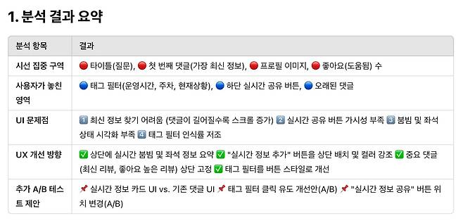 (1) ๋ถ์ ๊ฒฐ๊ณผ ์์ฝ (ํ ๋๋ ๋ฆฌ์คํธ)