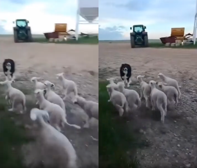 아기 양들은 보더콜리의 존재가 두렵고도 경외롭게 느껴졌는지, 곧바로 방향을 바꿔 원래 자리를 향해 뛰어가기 시작했습니다. 이 장면은 단순한 동물의 행동을 넘어, 리더십과 카리스마의 힘을 보여주는 상징적인 순간으로 해석될 수 있습니다. 보더콜리는 자신의 존재만으로도 양 떼를 통제할 수 있는 능력을 지닌 훌륭한 목양견임을 입증했습니다.