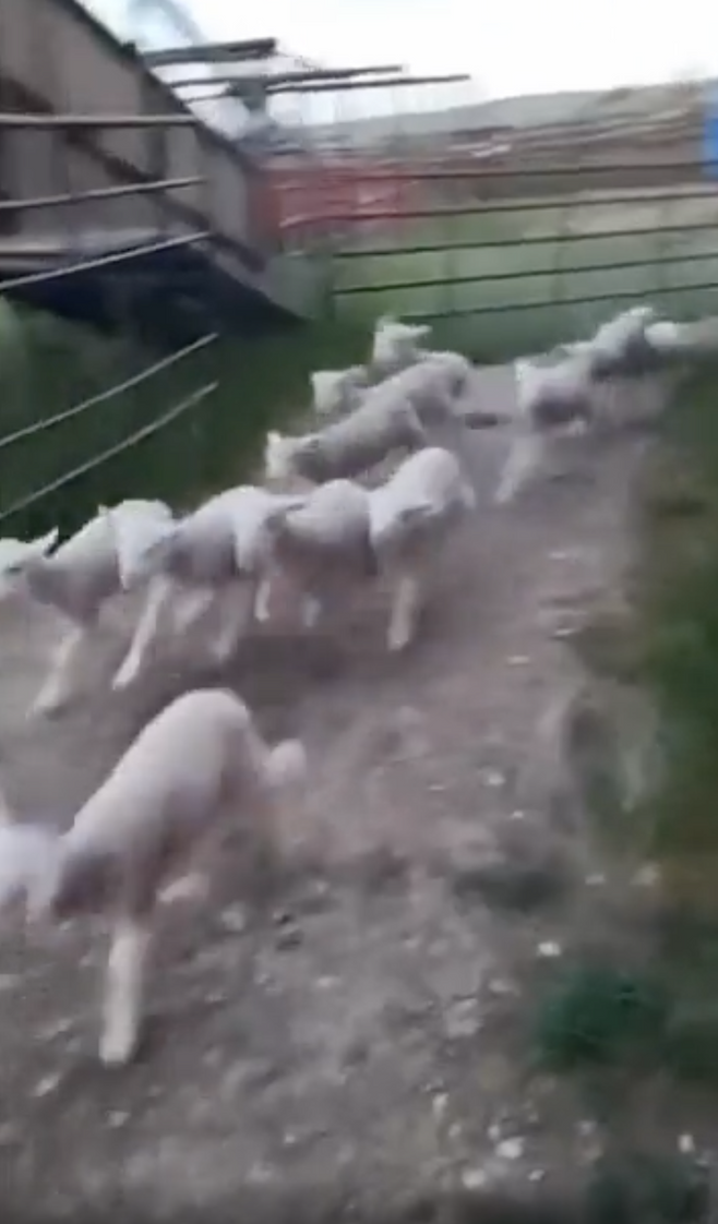 그의 카리스마에 눌려 빠르게 도망가는 아기 양 떼들