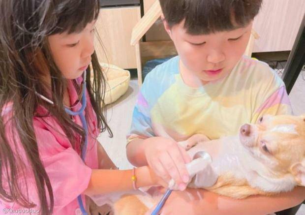 최근에도 치우두오두오는 꼬마 집사들과 역할 놀이를 했다. 이번에는 미용실 놀이였다.