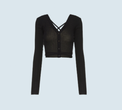 미우미우 울 가디건. miumiu Wool cardigan. 가격은 153만원대. 슬림핏이 특징이다.