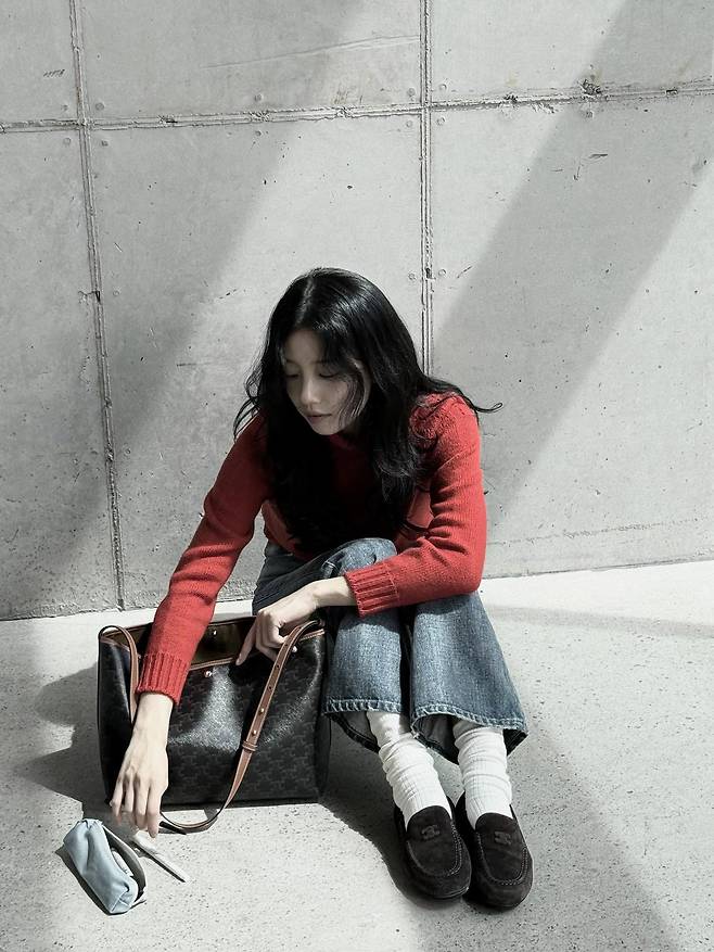 이 짙은 색상은 수지 씨의 투명하고 맑은 피부 톤을 더욱 돋보이게 하며, 눈매를 더욱 또렷해 보이게 하는 효과를 줍니다.