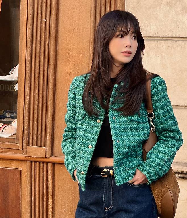 브라운 컬러의 숄더백 역시 예사롭지 않네요