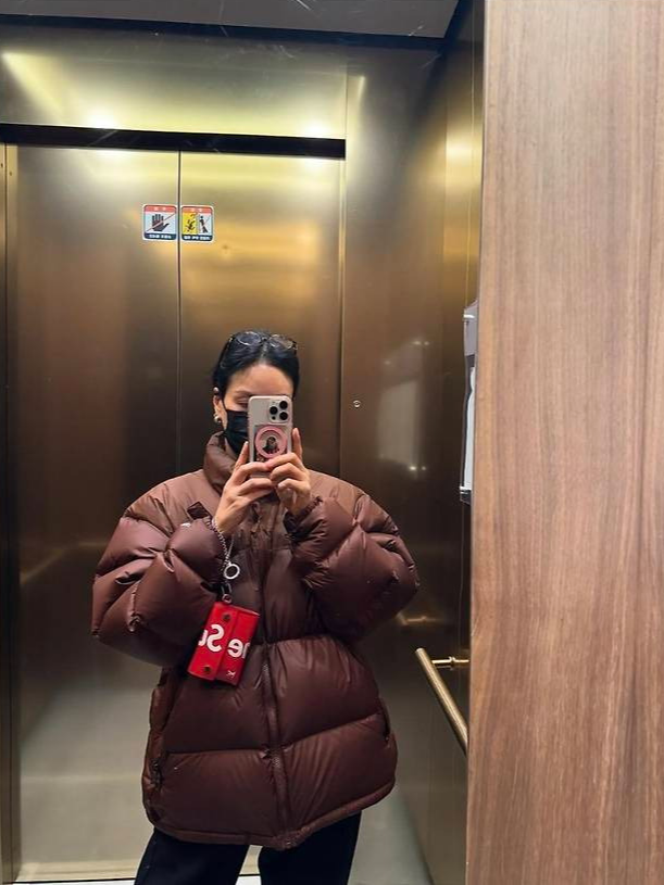 브라운 컬러의 패딩과 블랙 팬츠를 매치한 스포티한 룩부터, 크림색 오버사이즈 점퍼와 청바지로 내추럴한 무드를 강조한 스타일까지, 계절감과 트렌드를 완벽하게 반영했습니다.