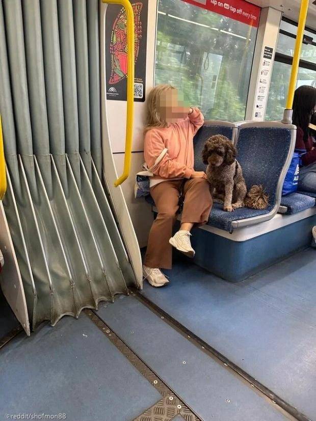 목줄을 착용한 상태였지만, 이동장이나 가방 없이 강아지가 좌석에 앉아 있는 모습은 논란이 됐다. 이 사진의 제목은 "대중교통 규칙을 무시하는 전형적인 견주들"이었다.