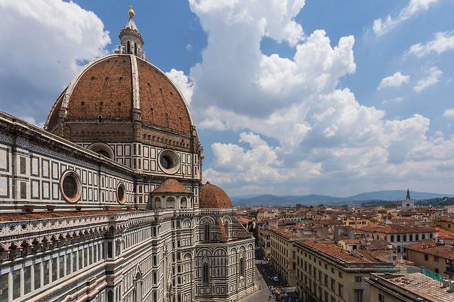 두오모 대성당은 피렌체의 대표적인 랜드마크로, 붉은 돔과 섬세한 건축이 특징입니다. 도시를 내려다보는 전망이 멋진 이곳은 피렌체를 상징하는 건축물입니다. 큐폴라(꼭대기)에 올라 낭만적인 피렌체의 배경과 함께 멋진 인생샷을 남겨보세요.