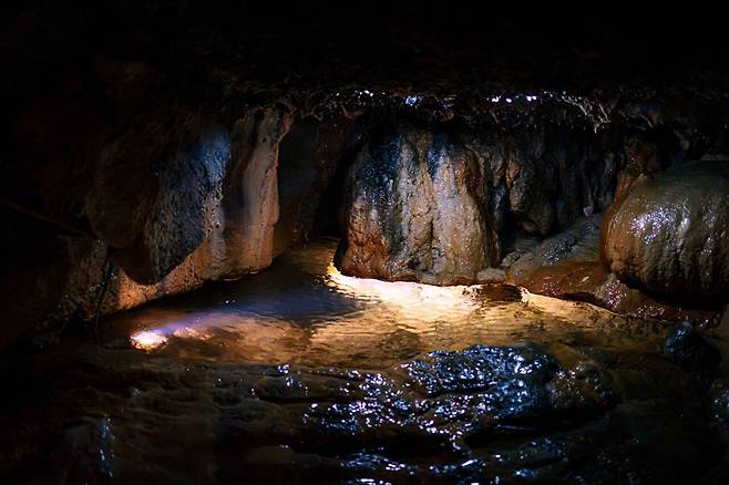 화암동굴은 1920년대 금광 채굴 갱도를 재활용한 테마 동굴인데요. 금광석 채취 과정 재현존과 유석폭포가 특징이며, 신종 생물 화암옛새우의 모식산지로 학술적 가치가 높은 곳이죠.