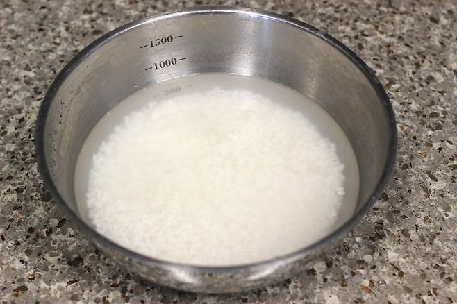 쌀 2컵은 씻어서 미리 30분 정도 물에 불려둡니다.