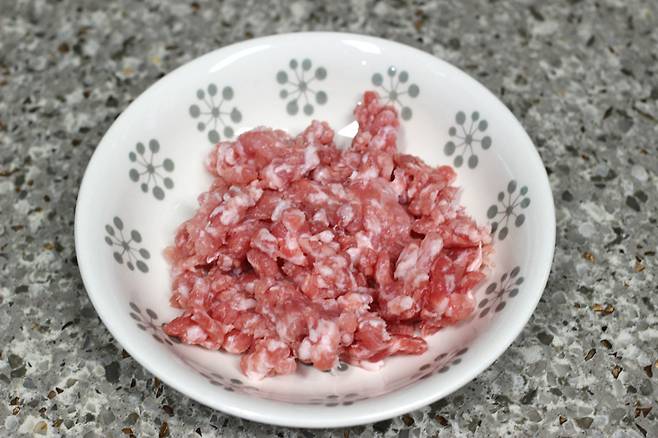 돼지고기 다짐육 100g 준비했어요. 소고기 다짐육을 이용해도 좋아요.