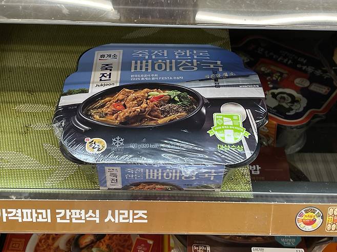 CU신상 죽전 한돈 뼈해장국은 한국도로공사 주최 2025 휴게소 음식 페스타 대상을 수상한 상품으로 조리하기도 간편하고 뼈와 건더기 양이 푸짐해요.